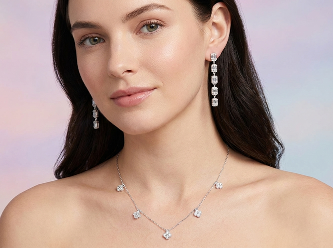 18k white gold drilled fancy diamond layering necklace (DN1079PA)