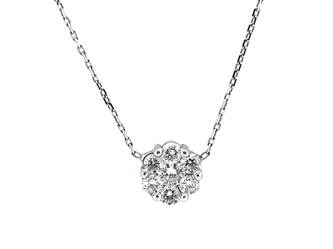 14k white gold 7 diamond cluster round necklace (DN30480E)