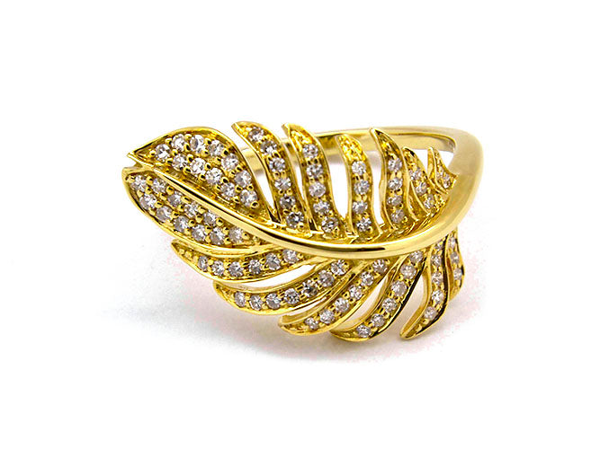 14k yellow gold fern leaf diamond ring (DR16276KY)