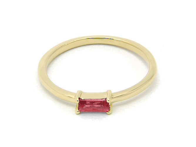14k yellow gold single baguette ruby ring (RR30331EY)