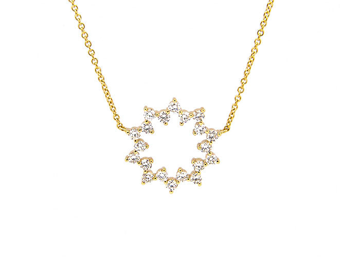 14k yellow gold sun burst diamond necklace (DN19927QY)